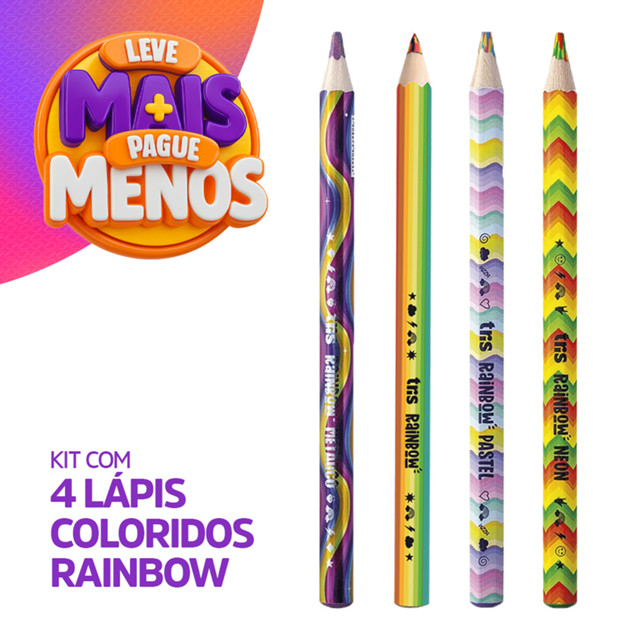 | Kit com 4 Lápis de Cor 'Rainbow' Jumbo | Kit | TRIS este produto | R$ 32,90 | 36% | 4.7/5 | — |