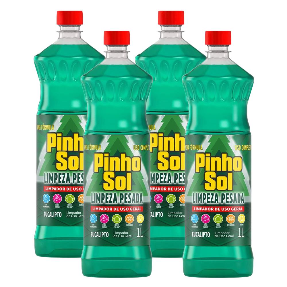 Kit com 4 Limpador Diluível Pinho Sol Limpeza Pesada Eucalipto 1L Cada