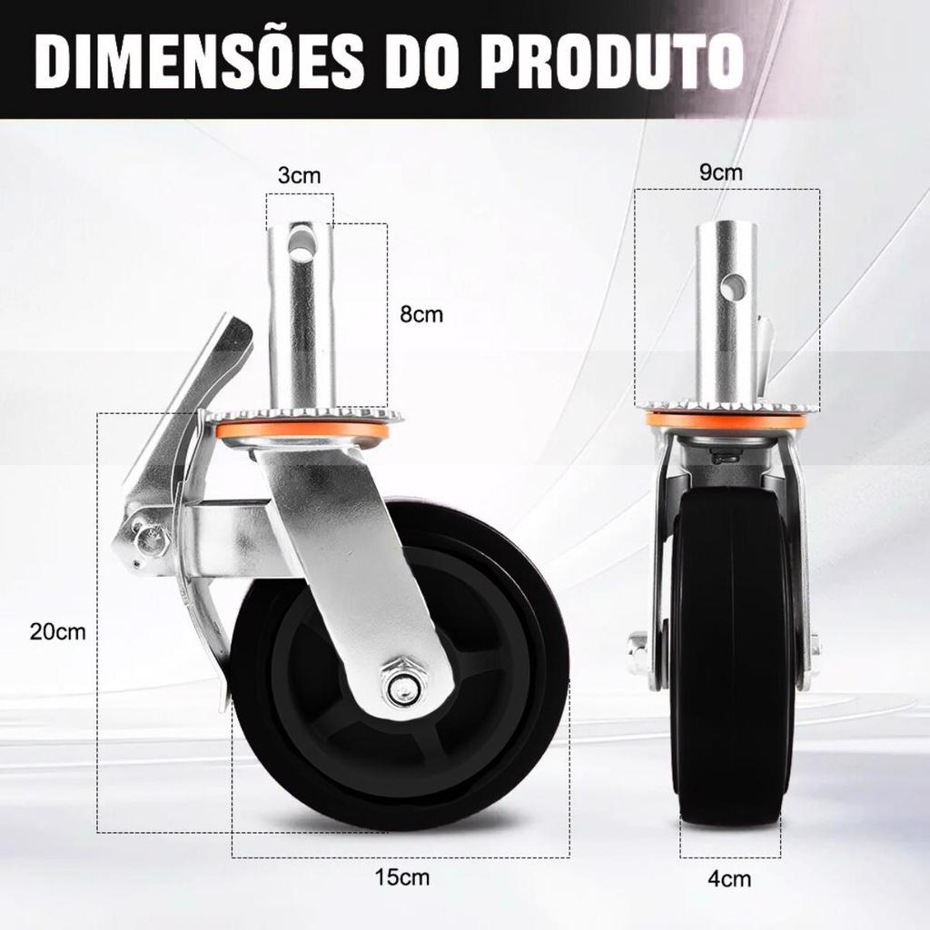 Kit Com 4 Rodízios Giratórios Com Freio Para Andaime - JST