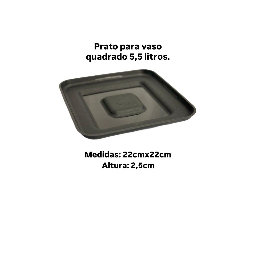 KIT COM 4 VASOS QUADRADOS 5,5L PRETOS COM PRATO Leve mais estilo e funcionalidade para sua casa ou jardim com este kit contendo 4 vasos quadrados de 5,5 litros na cor preta, cada um com prato incluso. Ideal para ambientes internos ou externos! ⚠ Atenção: Os vasos não possuem furos na base, sendo perfeitos para uso em ambientes internos. Caso necessário, é possível fazer os furos manualmente. 📏 MEDIDAS DO VASO Altura: 19 cm Diâmetro da boca: 23,5 cm Base: 13 cm 📏 MEDIDAS DO PRATO Dimensões: 22 x 22 cm Altura: 2,5 cm 📦 Enviamos para todo o Brasil.