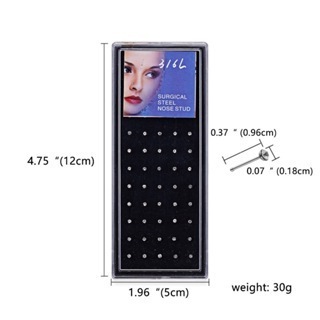 Kit Com 40 Piercing de Nariz Cristal Reto/Dobrar lindo aço inox