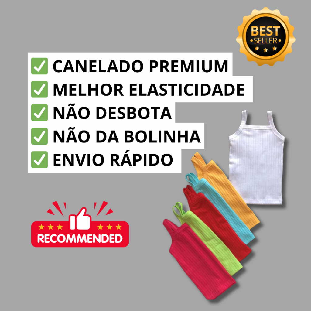Kit Com 5 Blusa de Alcinha Infantil Regatinha Menina Alça Basica
