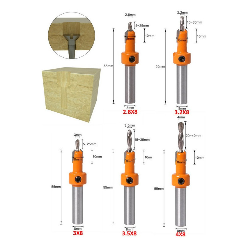Kit Com 5 Broca/Fresa Escariador Para Madeira 8mm/10mm