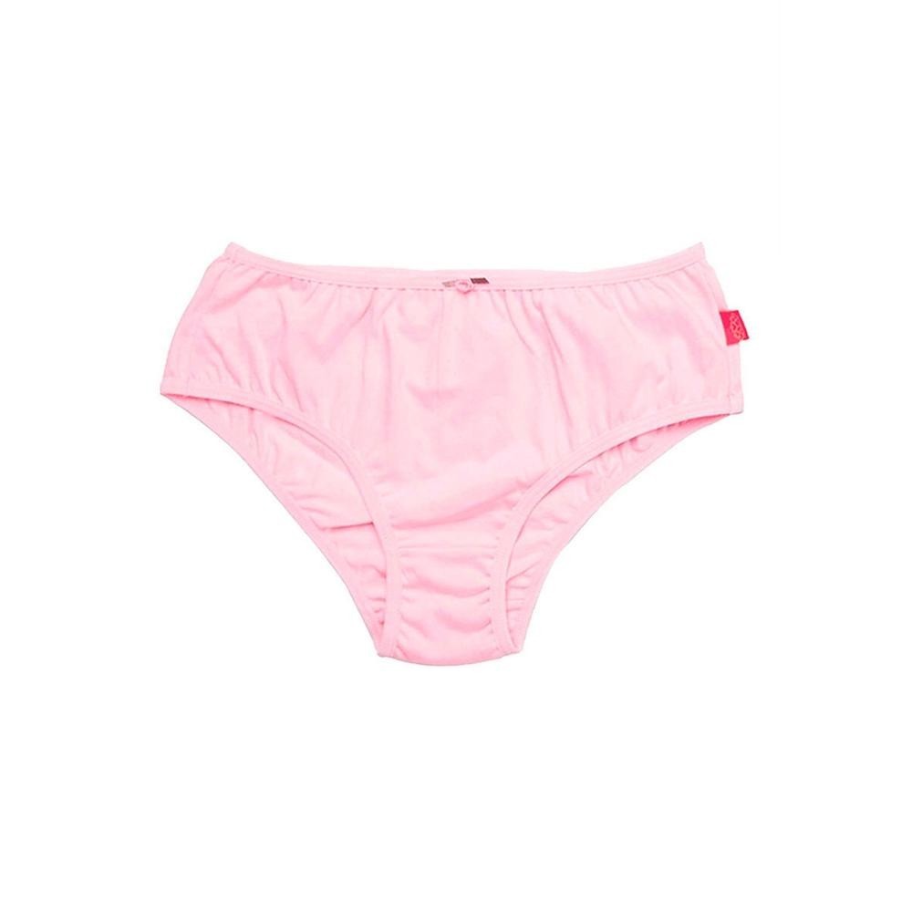 Características: Calcinha infantil básica lisa. Lacinho aplicado. Viés elástico super confortável nas pernas e na cintura. Cores: Branco: 3 branco e 2 rosa Rosa: 3 rosa e 2 amarelo Amarelo: 2 branco, 2 rosa e 1 amarelo Composição: 100% Algodão.