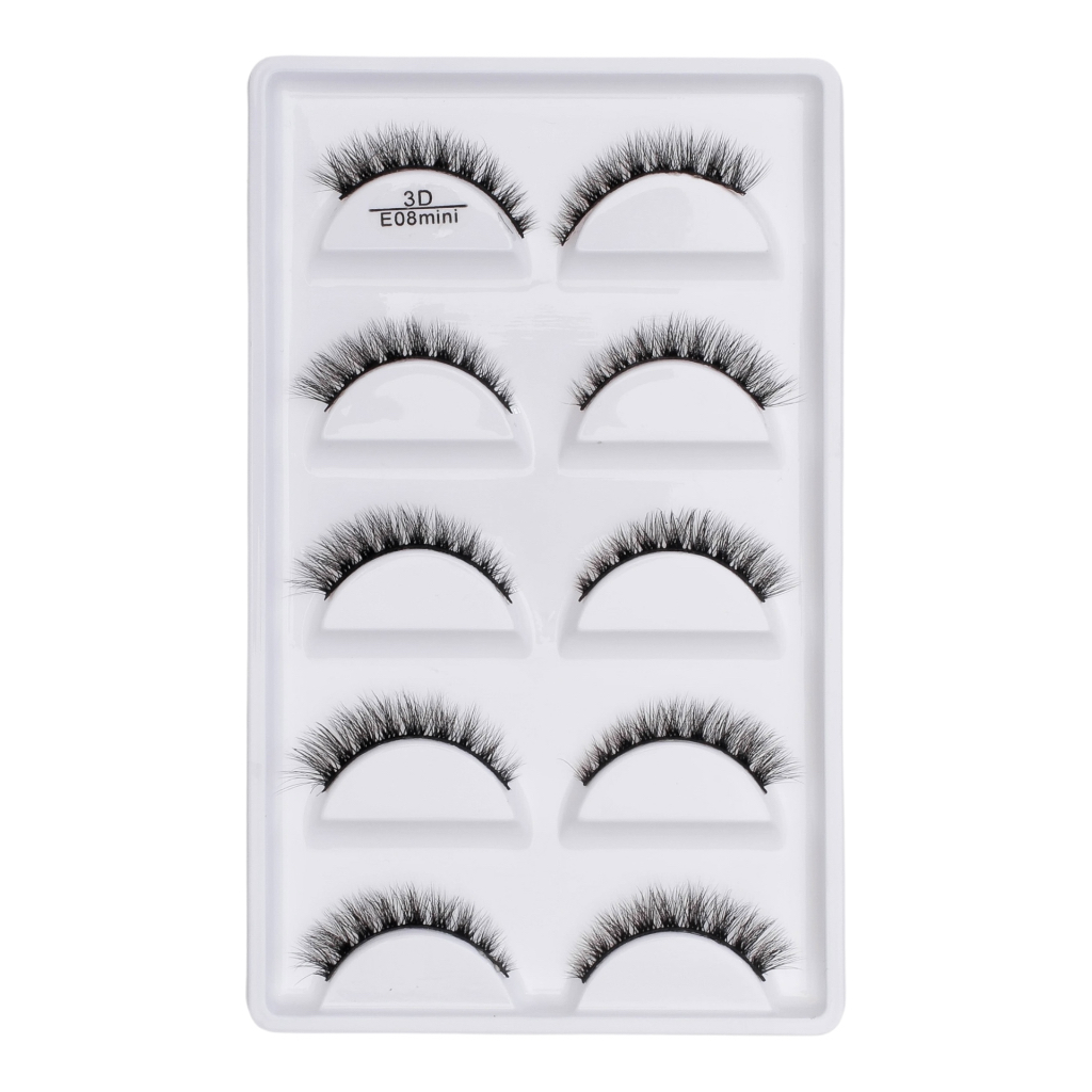 KIT COM 5 CARTELAS (25 PARES) CILIOS POSTICOS 3D E08 MINI