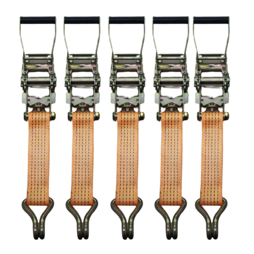 Kit com 5 Catraca móvel com rabicho 350mm gancho J Amarração de Cargas em Geral em Caminhões, Containers, Veículos, Tendas e Palcos de Eventos. Cinta: Poliéster Capacidade: 5000kg Gancho e Catraca: Aço Bicromatizado Terminal: Gancho Tipo J Largura: 50mm Fator de Segurança: 2:1 Cores: Laranja Atende as exigências da norma: EN12195-2 Nossa catraca é feito para você que precisa transportar cargas em geral, tais como: • Carros; • Motocicletas; • Jet Ski; • Barcos de Pequeno Porte Benefícios: - Costura robusta e reforçada - Totalmente ajustável - Segurança - Facilidade de uso - Reutilizáveis - Ideal para carga de Caminhões, Carretas, Carros, Motos, Jet-Ski, Guinchos etc. Especificações Técnicas: - Largura: 5 cm - Capacidade de carga: 5 toneladas - Catraca Móvel - Terminal: 1 ganchos tipo Compre com tranquilidade. Nosso produto é CERTIFICADO e APROVADO pelos testes mais rigorosos do mercado.