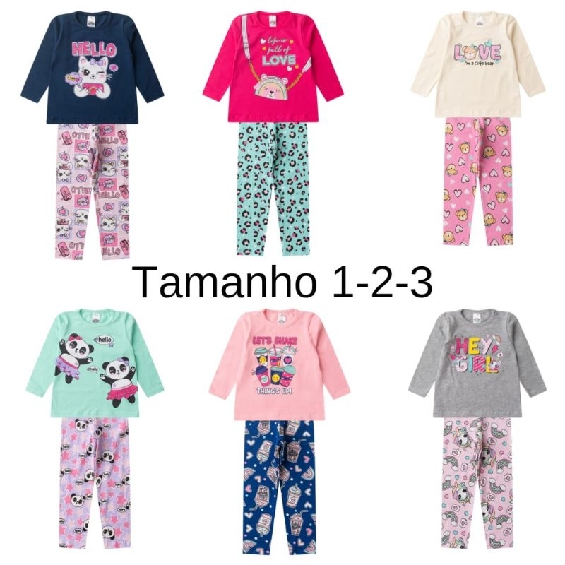Kit com 5 conjuntos de cotton inverno meia estação menina legging estampada e lisa