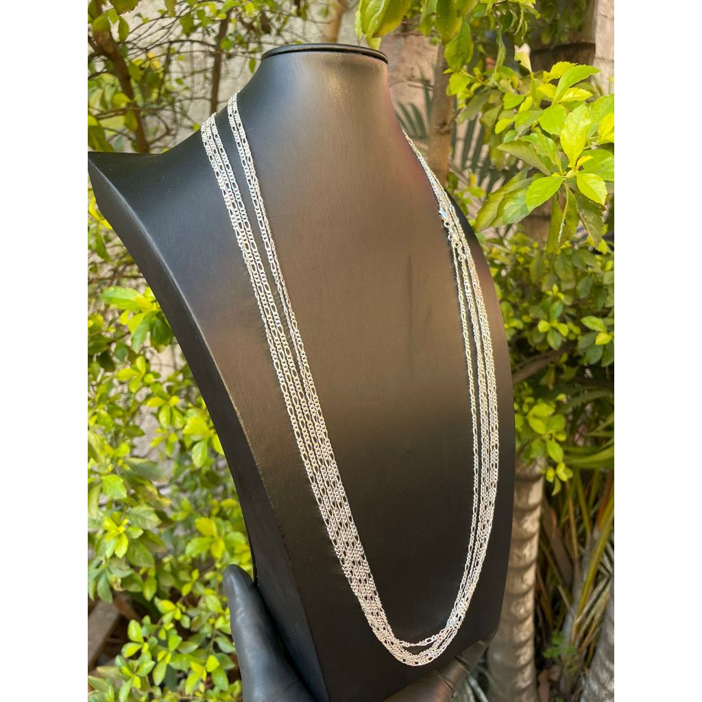 Kit com 5 Correntes Prata Mista 925 3x1 Elo Fino 3mm 70cm – Prata Nacional Masculina ou Unissex