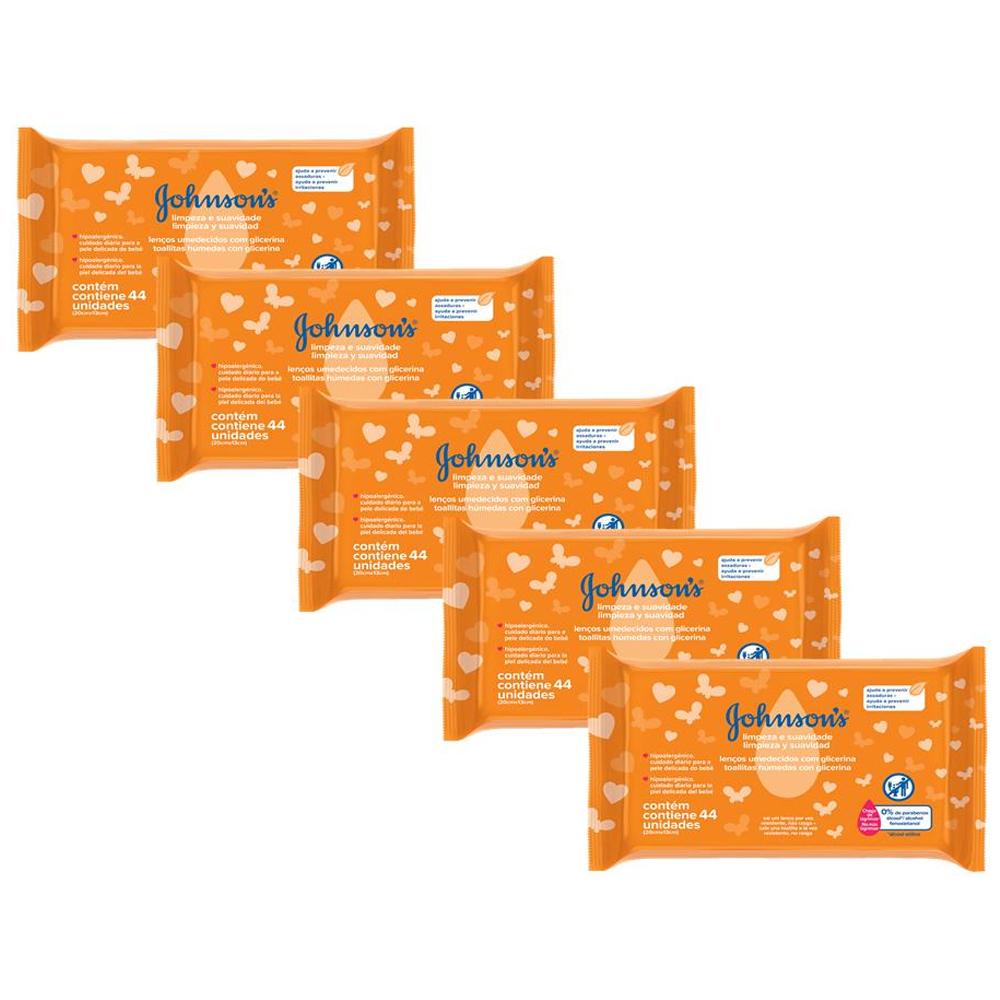 Kit com 5 Johnson's Baby Lenços Umedecidos e Suavidade 220 unidades