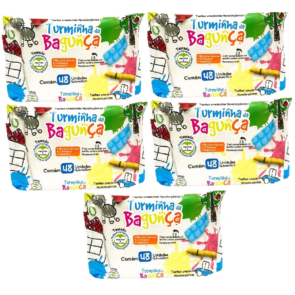Kit com 5 - Lenço Umedecido Turminha da Bagunça Toalha Umedecida 48 Unidades
