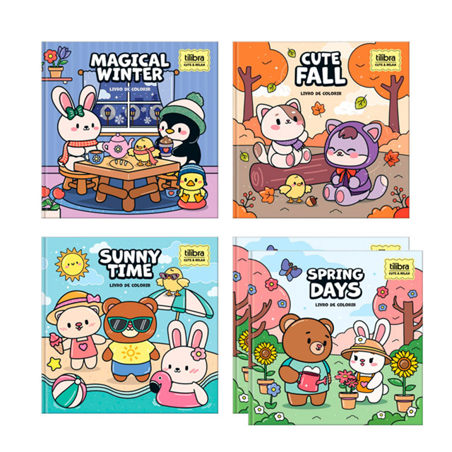 Kit com 5 livros de colorir Relax Seasons Tilibra