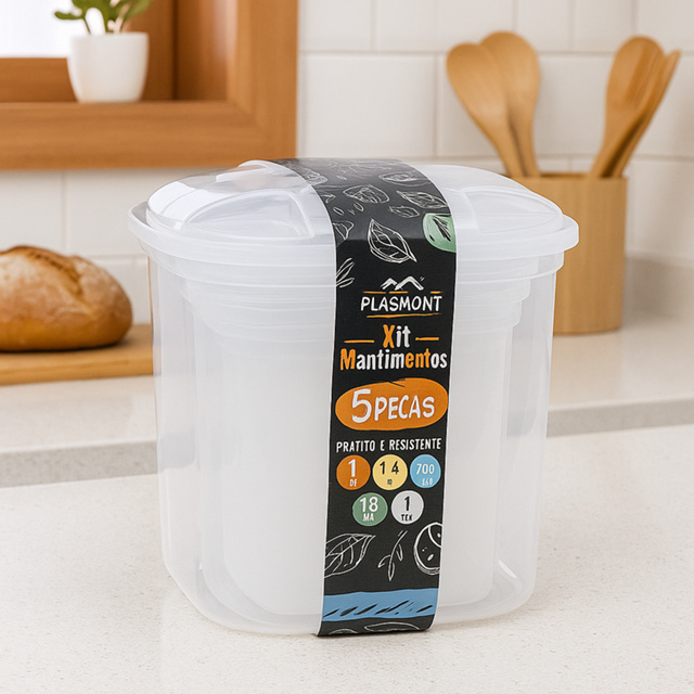 Kit Porta Mantimentos 5 Peças – Praticidade e organização para sua cozinha! 🍽️ Mantenha seus alimentos sempre frescos, bem armazenados e sua cozinha organizada com o Kit Porta Mantimentos. Composto por 5 potes de diferentes capacidades, ele é ideal para armazenar grãos, massas, biscoitos, farináceos, entre outros itens do dia a dia. 🔸 Capacidades dos potes: • 1 pote de 7 litros • 1 pote de 4,5 litros • 1 pote de 3,6 litros • 1 pote de 1,8 litro • 1 pote de 1 litro 🔹 Características do Produto: • Kit com 5 potes empilháveis e transparentes • Material: Plástico resistente e de fácil higienização • Tampa com excelente vedação, protegendo contra umidade e pragas • Design moderno e compacto, aproveita melhor o espaço • Ideal para armários, despensas ou geladeiras ✅ Benefícios: Mantém os alimentos conservados por mais tempo Visualização fácil do conteúdo Ocupa pouco espaço na cozinha Versátil e durável Produto leve, prático e funcional Organize com estilo e eficiência com o Kit Porta Mantimentos! 🧂🍝🫘