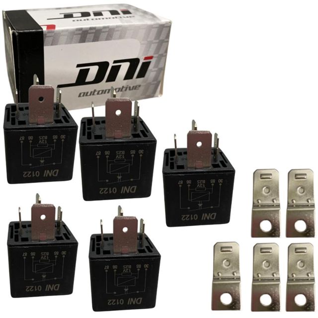 Kit com 5 Relés Auxiliar Universal 12v 70A Com Suporte Preto Para Uso Geral Original Dni0122