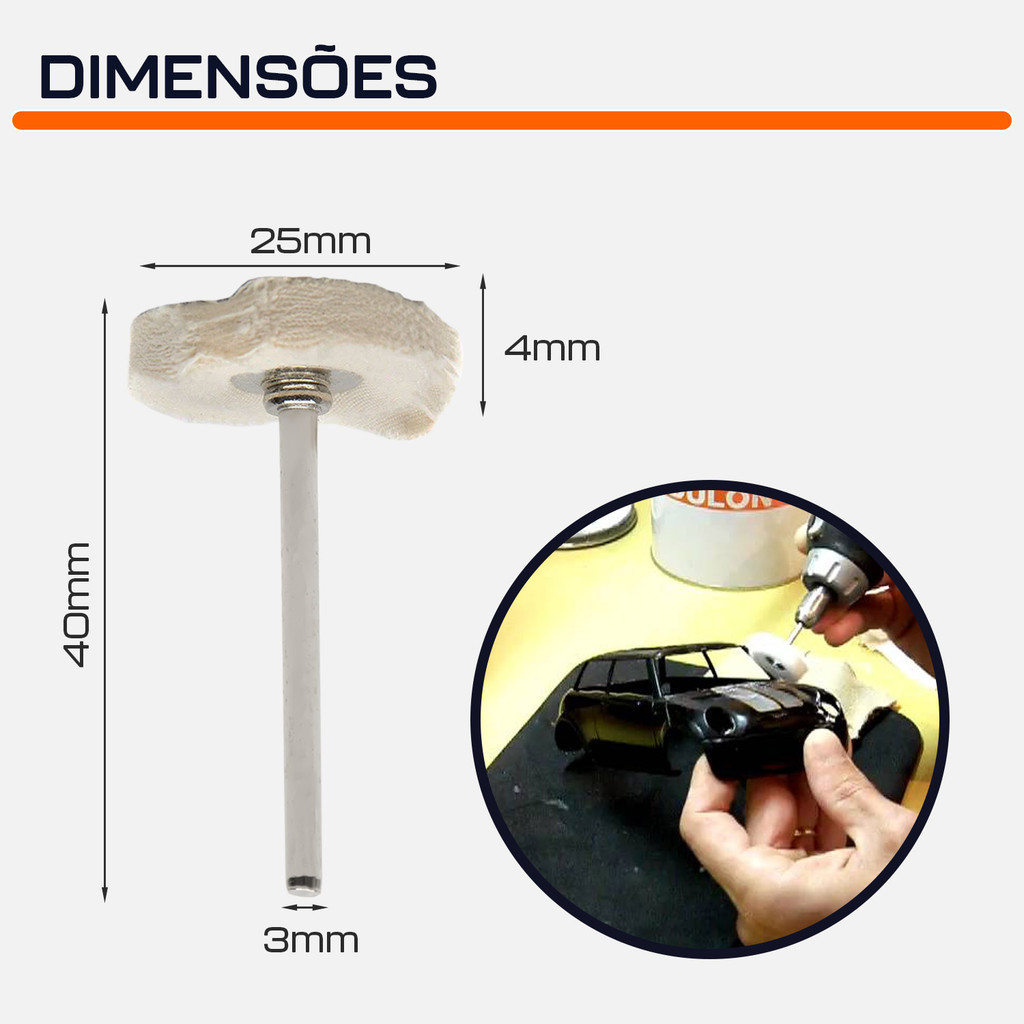 Kit com 5 Rodas de Pano Costurada 25mm com Haste 3mm para Micro Retíficas Dremax