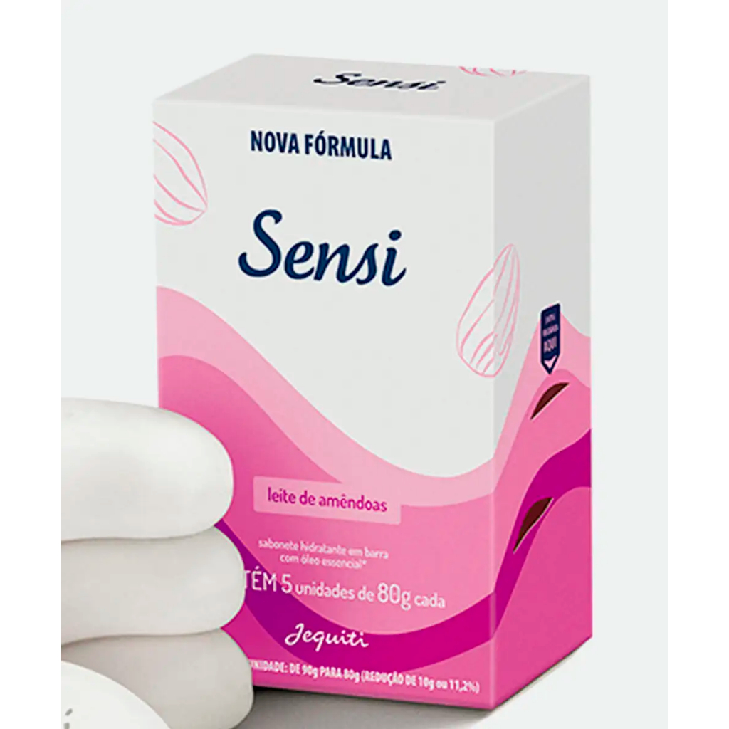 Kit com 5 Sabonetes Hidratantes Jequiti Sensi Leite de Amêndoas – 80g cada