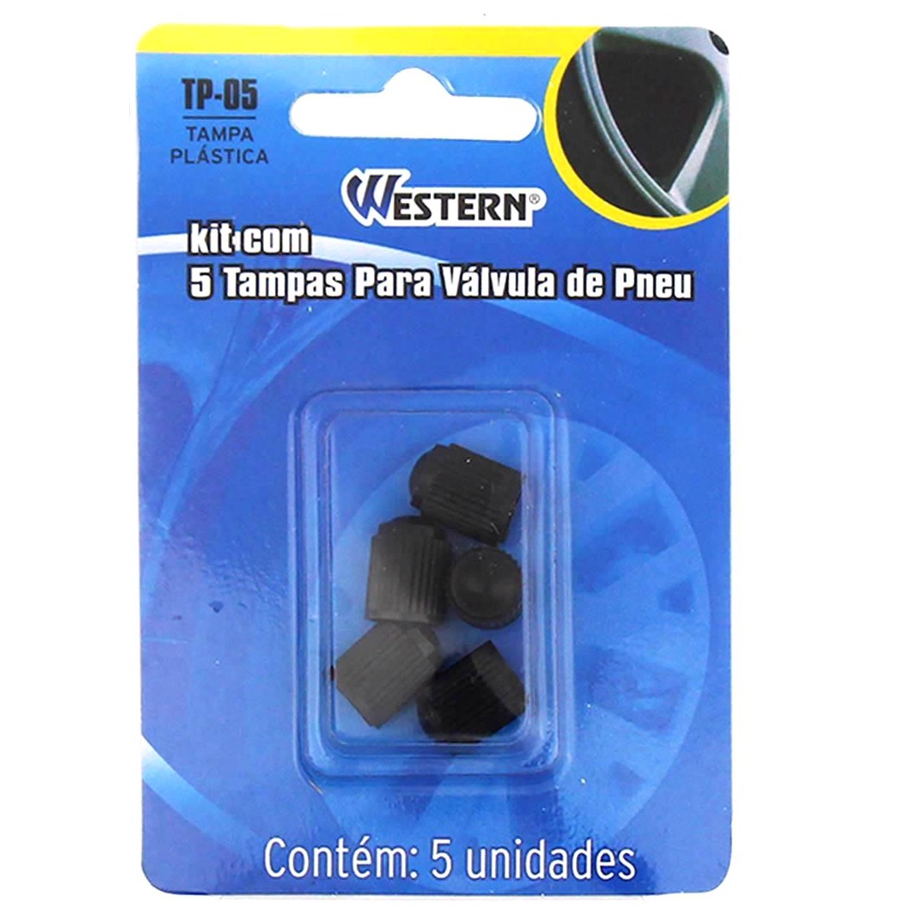 Kit com 5 Tampas Universal Pretas para Bico de Válvula de Pneu de Carro Moto ou Bike - Western TP05