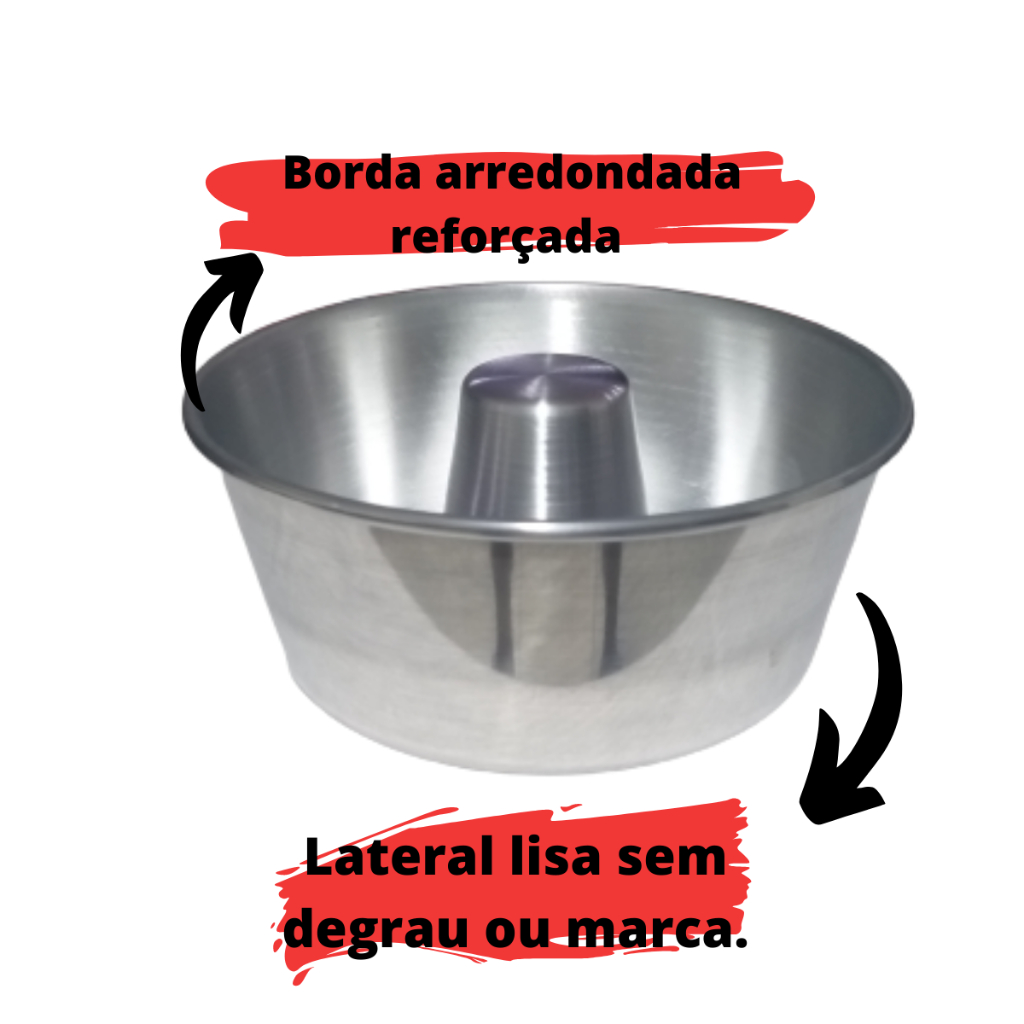 Kit com 5 unidades Forma Bolo Pudim Número 16 Características:Tamanho da boca 16 a 17cm Largura da boca da forma: 16 a 17 cm Largura do fundo da forma: 13.0 cm Altura da forma até na borda: 8 a 9 cm Largura em cima do cone: 4.0 cm Largura do fundo do cone: 7 cm Altura do cone: 5.5 cm Espessura: 0,9 mm