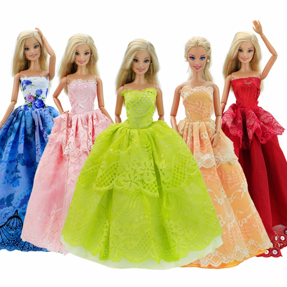 Kit com 5 Vestidos Longos De Princesa Festa Casamento Noiva para Bonecas Compatíveis Bonecas de Até 30cm de Altura - Sheilinha Confecção