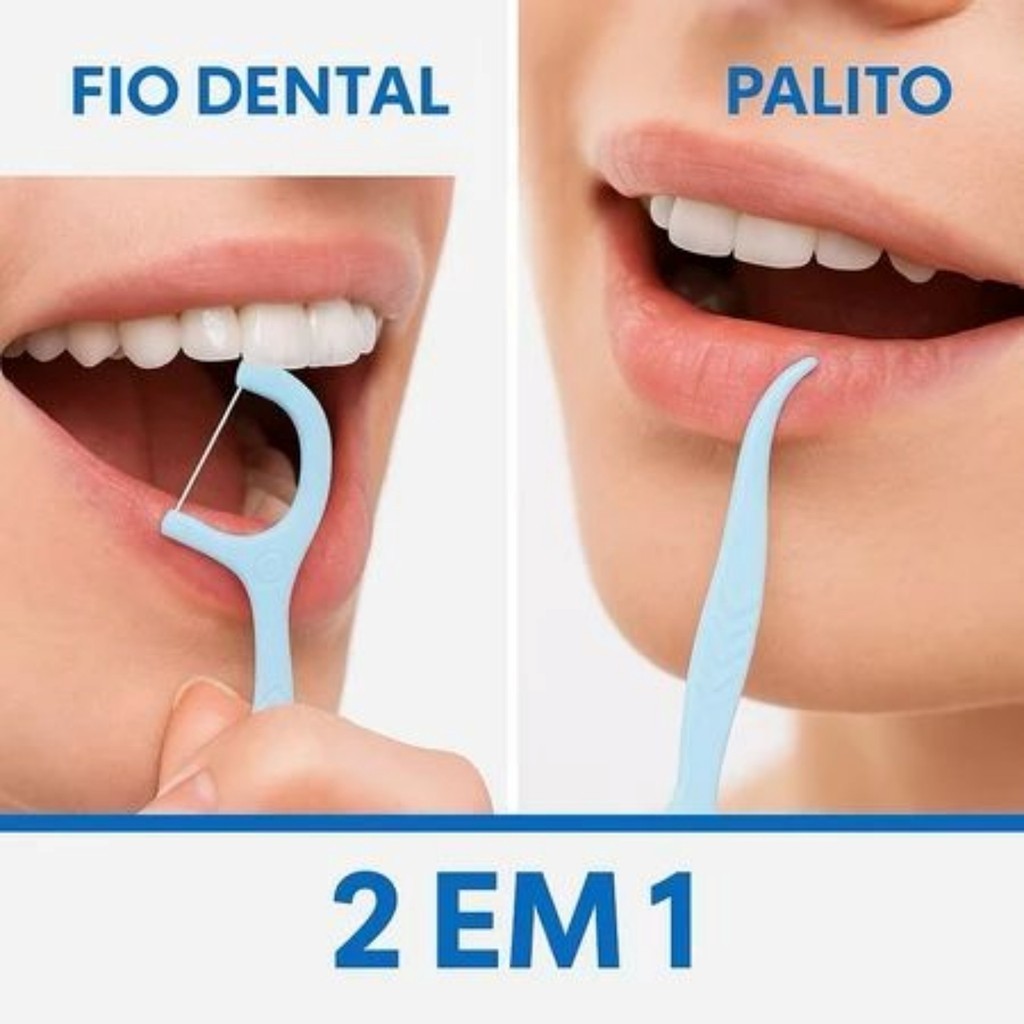 KIT FIO DENTAL COM ARCO PARA LIMPEZA PROFUNDA DOS DENTES- PRONTA ENTREGA!! Este kit de Fio Dental Ultra Fino com Arco foi desenvolvido para oferecer uma limpeza bucal completa, prática e eficaz. Com design ergonômico e fio resistente, proporciona remoção profunda de resíduos entre os dentes, ajudando na prevenção de cáries, mau hálito e problemas gengivais. Ideal para uso diário, tanto por adultos quanto por crianças, garantindo higiene e praticidade em qualquer momento do dia. Características Principais: • Fio ultra fino, ideal para alcançar espaços estreitos sem causar desconforto • Arco anatômico que facilita o uso e oferece maior controle • Remove placa bacteriana e resíduos com eficiência • Produto higiênico e seguro, com unidades individuais • Indicado para toda a família • Excelente custo-benefício nas opções de kits maiores
