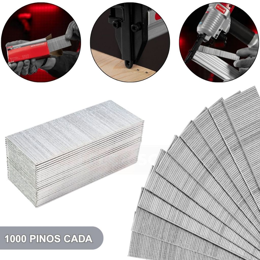 Kit 5000 Pinos 50, 40, 30, 20 e 10MM (1000 de cada) Para Pinadores Pneumático - MTX O Kit de Pinos para Pinador Pneumático é ideal para quem busca praticidade e versatilidade em fixações de marcenaria, construção e acabamentos. Com 5.000 unidades no total, divididas em cinco medidas diferentes, ele garante a solução completa para múltiplas aplicações em um único conjunto. Informações Técnicas: - Tipo: Pino reto tipo F - Largura: 1,25 mm - Espessura: 1,0 mm - Compatibilidade: Pinadores pneumáticos para pinos tipo F de 10 mm a 50 mm - Material: Aço de alta resistência - Acabamento: Zincado para maior durabilidade e proteção contra corrosão Diferenciais: - Kit completo com diversas medidas em um só pacote - Maior praticidade: cinco tamanhos diferentes para variadas aplicações - Acabamento zincado para maior resistência à oxidação - Ideal para montagem de móveis, marcenaria, tapeçaria, molduras e acabamentos Conteúdo da Embalagem: - 01 Caixa com 1.000 pinos de 10 mm - 01 Caixa com 1.000 pinos de 20 mm - 01 Caixa com 1.000 pinos de 30 mm - 01 Caixa com 1.000 pinos de 40 mm - 01 Caixa com 1.000 pinos de 50 mm - Total: 5.000 unidades Garantia: - Garantia legal: 90 dias contra defeitos de fabricação Observações: - Imagens com proteção autoral. O uso indevido estará sujeito à LEI Nº 9.610. (Não copie, evite transtornos)