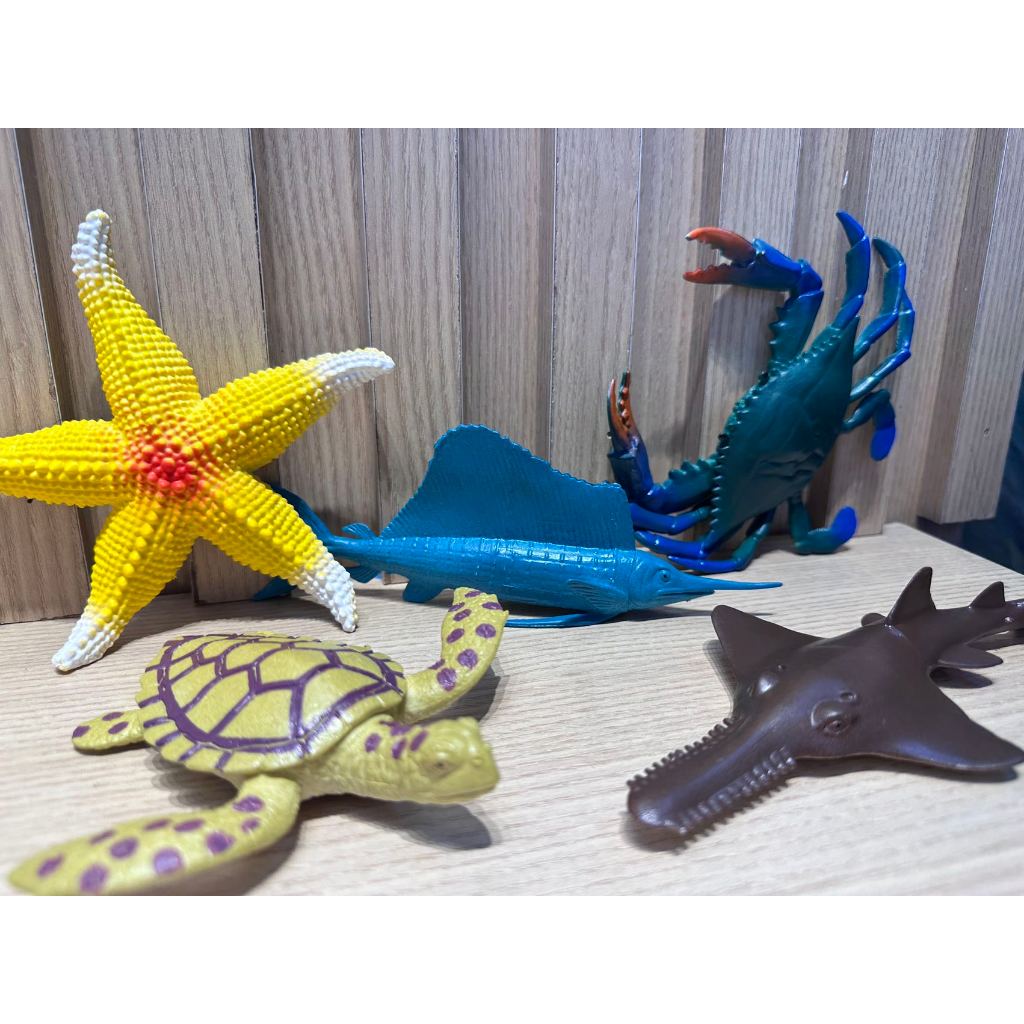 Kit com 6 Animais tem Tubarões, estrelas do mar, tartarugas, caranguejos, tubarões pontiagudos