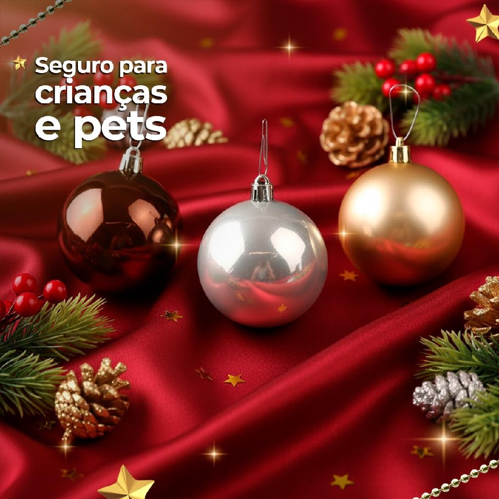 Bolas de natal lisas 8 cm – kit 6 sortidas marfim, ouro e marrom para árvore Tipo de embalagem: tubo plástico transparente O que contém: 6 bolas de natal lisas sortidas (marfim, ouro e marrom) de 8 cm, com cordões para pendurar - Bolas de natal lisas 8 cm - Cores: marfim, ouro e marrom - Acabamento brilhante elegante - Leves e fáceis de pendurar - Visual neutro que harmoniza - Uso interno: árvore e guirlanda - Qualidade Cromus no acabamento O kit com 6 bolas de natal lisa sortida marfim ouro marrom cria uma base sofisticada para a árvore. As três tonalidades se complementam, refletem as luzes e combinam com laços, fitas e enfeites com glitter. Vêm prontas para uso, em tubo que facilita transporte e armazenamento. Motivos para comprar - Combinação pronta que harmoniza a decoração - Brilho na medida certa sem pesar o visual - Versátil para centros de mesa e guirlandas - Excelente custo-benefício para dar volume - Marca Cromus, referência em festas e decoração Perguntas frequentes As peças são iguais? - Sim, lisas e brilhantes em três cores Vem com cordão? - Sim, todas acompanham cordão Qual o diâmetro? - Aproximadamente 8 cm Posso usar ao ar livre? - Indicado para uso interno Sobre a marca Fundada em 1993, a Cromus Soluções é pioneira e líder em embalagens para presentes. Antecipando desejos do consumidor, oferece linhas inovadoras em Cromus Festas, Cromus Decorações, Cromus Embalagens Corporativas e Cromus Balloons. Com mais de 40 mil produtos e atuação internacional, mantém a missão: encantar ao primeiro olhar.