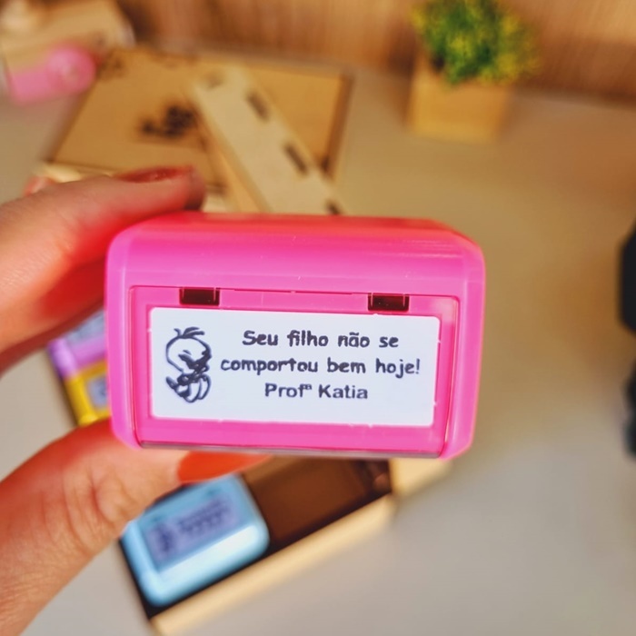 SOBRE O KIT: O KIT de carimbos é composto por 6 carimbos e companha a caixinha personalizada como na foto. Área de impressão do carimbo é de 38x14mm Marca trodat modelo 3911 A tinta é preta e os carimbos já são entintados de fábrica podendo repor a tinta quando acabar, temos vídeo ensinando. Prazo confecção/postagem: Prazo é de até 15 dias úteis PARA FAZER AS ESCOLHAS DAS ESCRITAS E PERSONAGENS: Após finalizar a compra, enviaremos nosso Catálogo, onde poderá escolher e enviar os desenhos os dizeres e a cor das capinhas. Caso nenhuma escrita do nosso catálogo lhe atenda, você pode montar sua escrita respeitando o limite do carimbo. Pode montar o carimbo com dados pessoais RG, CPF, Profissão , algumas profissão como por exemplo médicos pedimos a comprovação da profissão. Pode montar as escritas com outro idioma e escolher personagens no nosso catálogo. OBS: Não acompanha os objetos do cenário, tais como: Canetas, porta canetas, vasos etc ( leia a descrição do produto e quantidade)