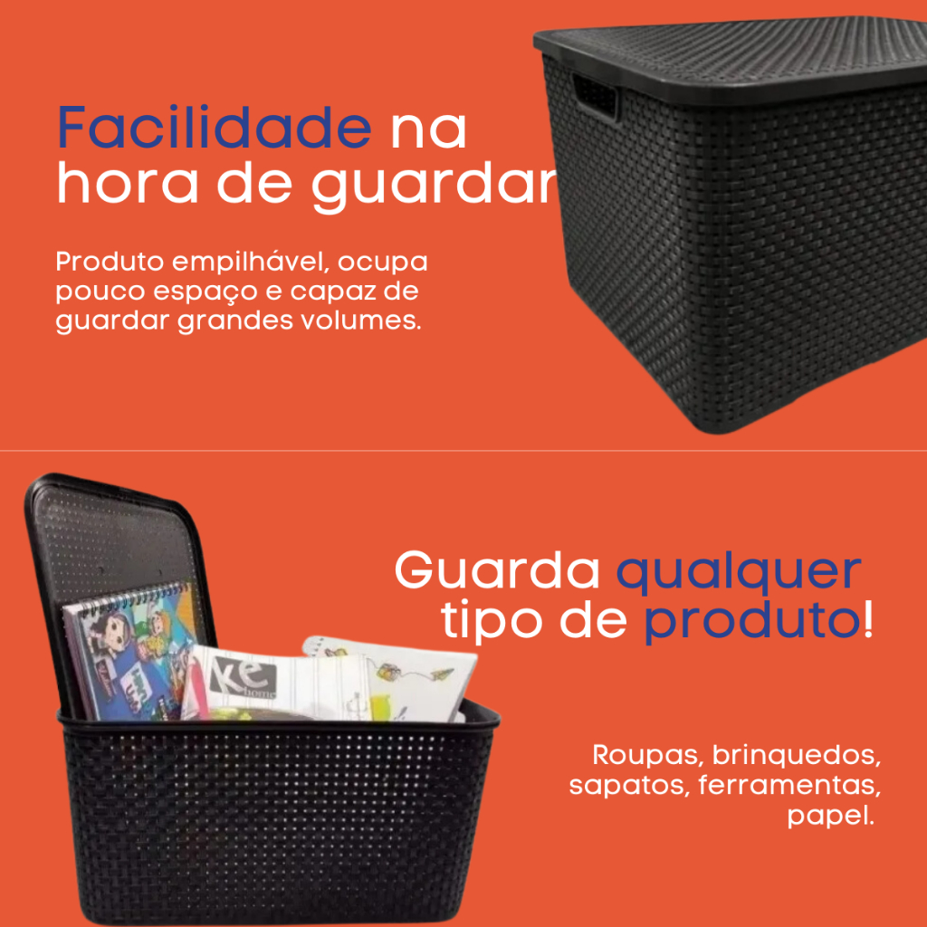 | Kit Com 6 Cesto Caixa Organizadora Rattan 20 L Preto Com Tampa Arqp... este produto | R$ 436,91 | — | 5.0/5 | 69 |