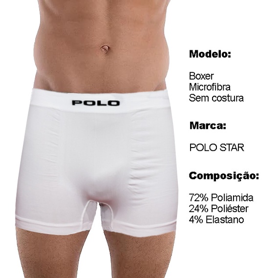 Kit com 6 Cuecas Box Polo Star Branca Masculina