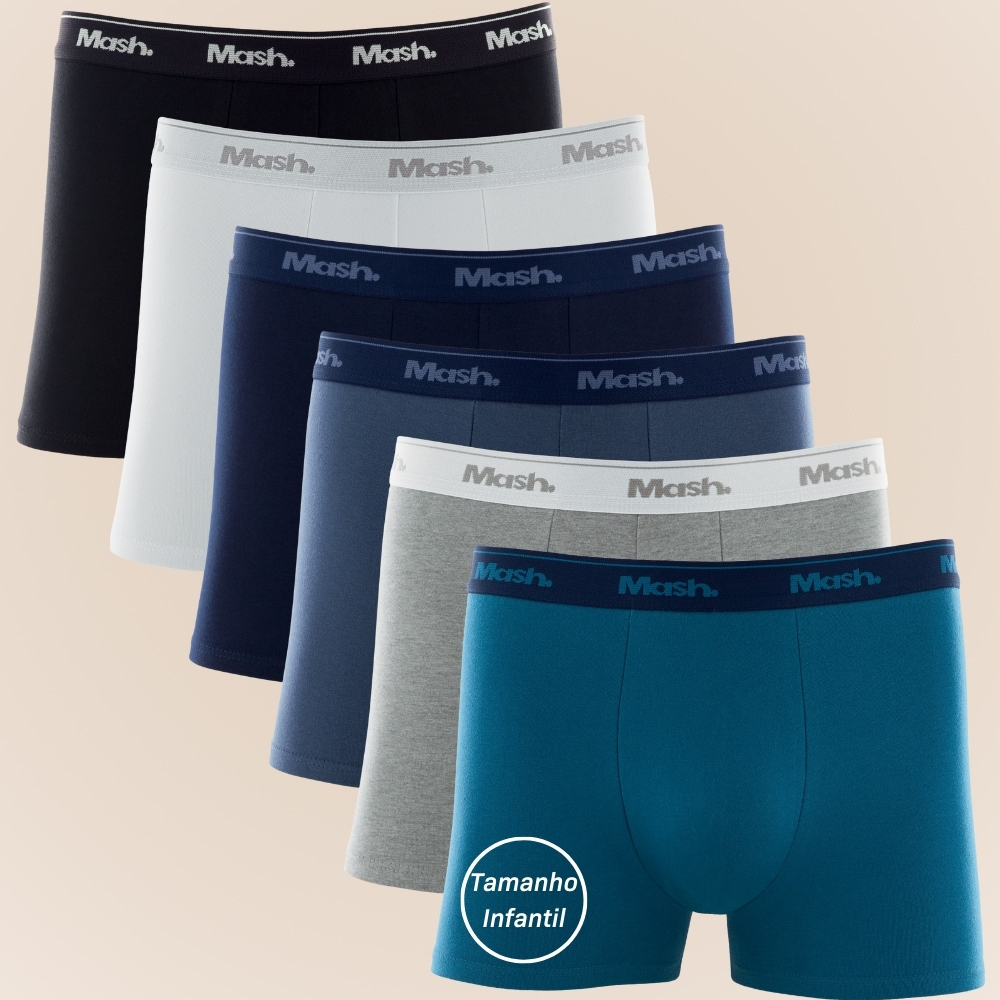 Kit Com 6 Cuecas Boxer Box Básica Kids Mash Infantil Juvenil Em Algodão