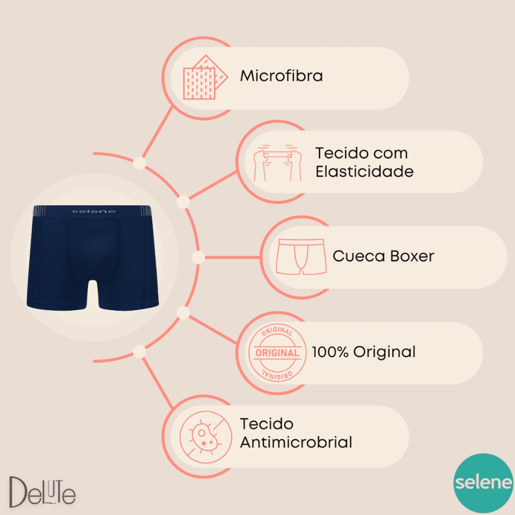 Kit com 6 Cuecas Boxer Selene Masculina Anatômica e Confortável