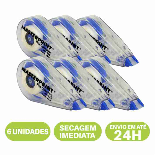 Kit com 6 Fitas Corretiva 5mm x 6m Secagem Imediata Masterprint