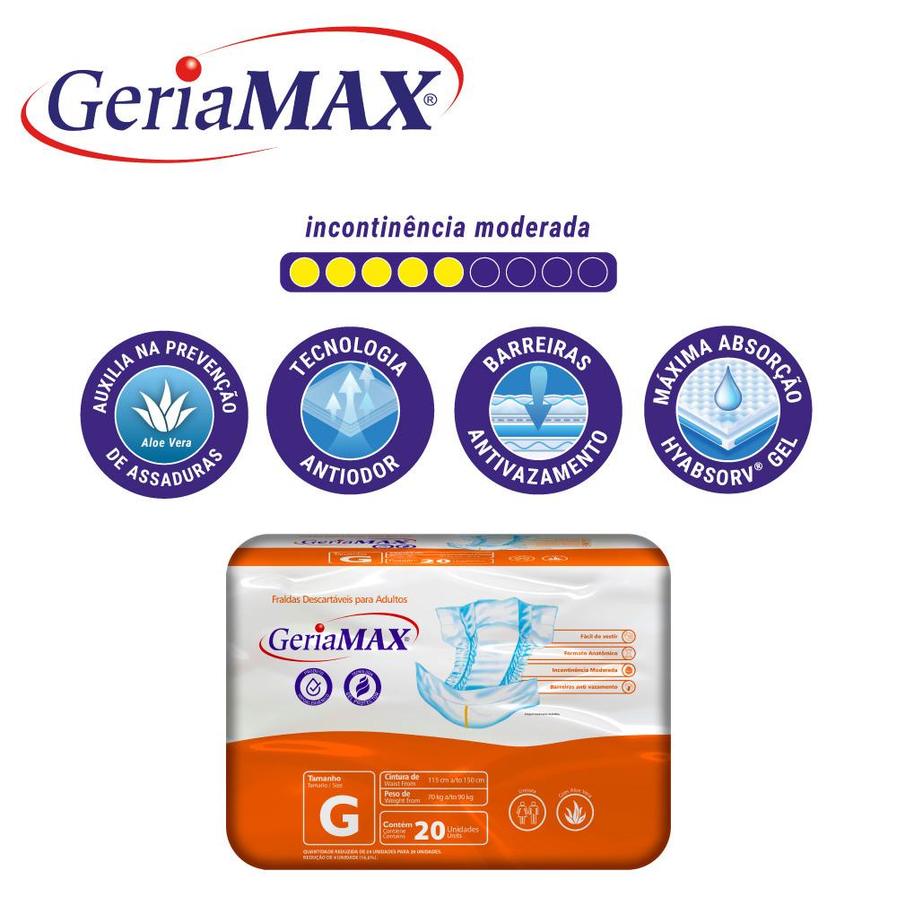 Kit com 6 Fraldas Geríatricas Geriamax G com 20un cada