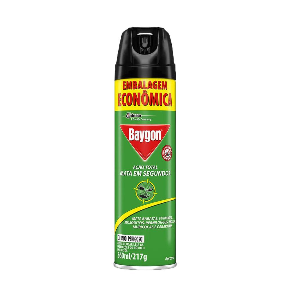 O kit contém: 6 Inseticidas Baygon Aerossol Ação Total com 360ml cada. Inseticida Baygon Aerossol Ação Total 360ml Embalagem Econômica Baygon ação total é poderoso para resolver os seus problemas com insetos, pois atua em segundos contra baratas e mosquitos. Compre Produtos Baygon