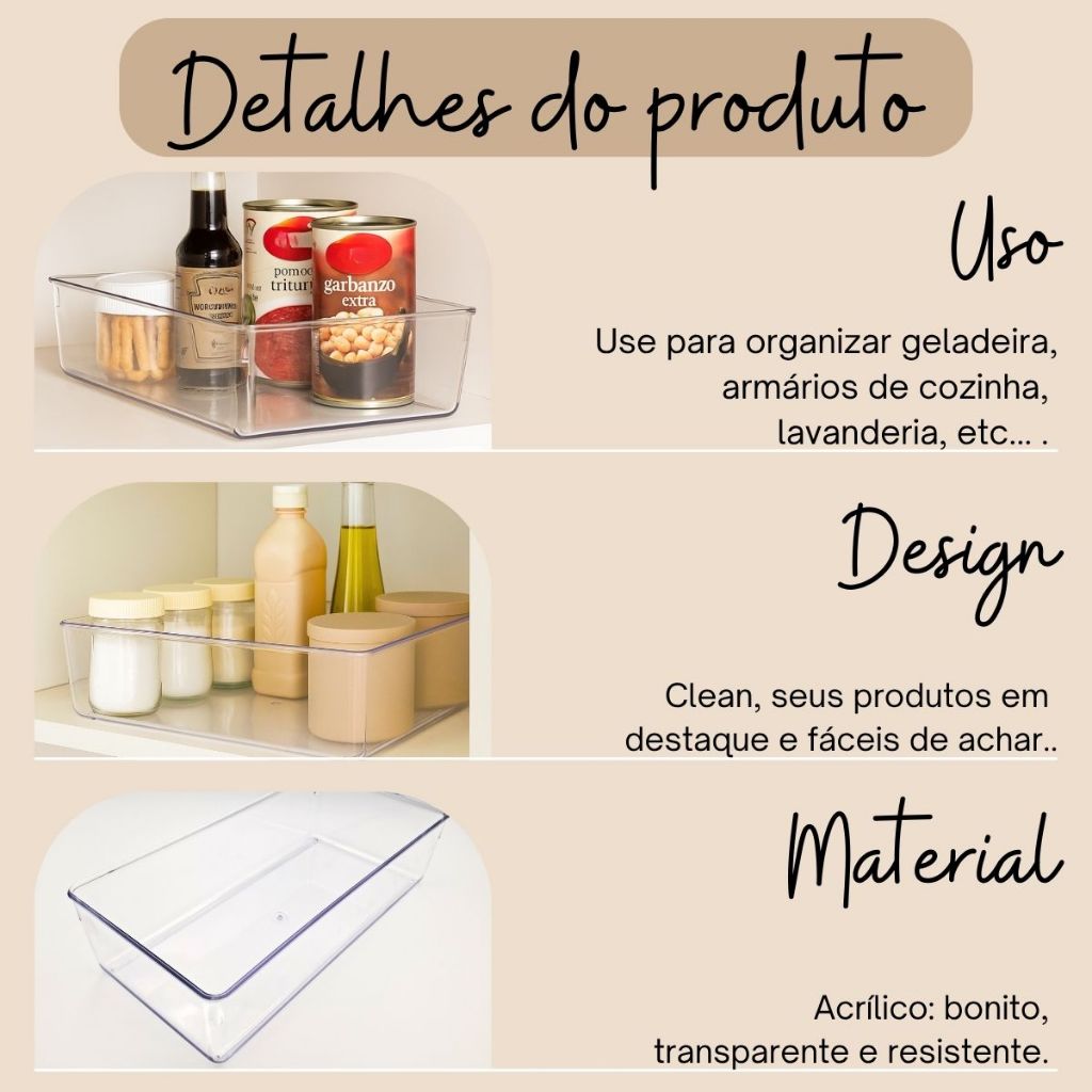 Apresentando a vocês: Kit com 6 - Organizador de Geladeira e Armário Retangular em Acrílico - Multiuso Transparente. ********************************************************************************************************* Transforme sua rotina com este organizador multiuso retangular, perfeito para deixar sua geladeira, armário ou despensa sempre organizados. Com design moderno e estrutura transparente, você enxerga tudo com facilidade e mantém cada item no seu lugar. ********************************************************************************************************* ENVIA AINDA HOJE? R: Temos todos os produtos em estoque e em no máximo 24 horas úteis seu pedido já estará com a transportadora. QUAL O TAMANHO? R: L 15cm x C 30cm x A 8cm EMITEM NOTA FISCAL? R: Sim! Todos os nossos produtos acompanham Nota Fiscal Eletrônica. A Nota Fiscal é emitida automaticamente pelo sistema da Plataforma, com os dados cadastrados no momento da compra. ********************************************************************************************************* Benefícios: > Material resistente e de alta qualidade > Design transparente que permite fácil visualização do conteúdo > Ideal para armazenar temperos, sachês, frios, latas, condimentos e muito mais > Pode ser usado em diferentes ambientes: cozinha, lavanderia, banheiro ou escritório > Fácil de limpar e empilhável, otimizando o espaço ********************************************************************************************************* Ficha Técnica: Material: Acrílico BPA Free: Livre de BPA Validade: Indeterminada ********************************************************************************************************* O que você vai receber? 1 kit com 6 Organizador de Geladeira e Armário Retangular em Acrílico ***ATENÇÃO*** Você vai receber os organizadores exatamente iguais aos da foto, com as mesmas dimensões e capacidade anunciados aqui. Encontramos muitos anúncios onde os vendedores anunciam com um tipo de produto nas fotos e enviam outro modelo. Fique tranquilo, somos profissionais e entregaremos tudo conforme anunciado. ********************************************************************************************************* INSTITUCIONAL: Nosso objetivo é entregar de forma ágil e profissional produtos de qualidade. Trabalhamos sempre para superar as expectativas de nossos clientes e fazer com que eles tenham uma experiência única. GARANTIA: Enviamos os produtos bem embalados. Todos os produtos têm garantia de troca/devolução dentro de 7 dias após o recebimento. AGILIDADE: Trabalhamos somente com produtos em estoque. O prazo máximo para o envio do pedido é de 24 horas úteis, mas nosso objetivo é fazer o envio no mesmo dia, sempre que possível. ********************************************************************************************************* Qualquer dúvida deixe sua pergunta! Agradecemos por sua atenção.