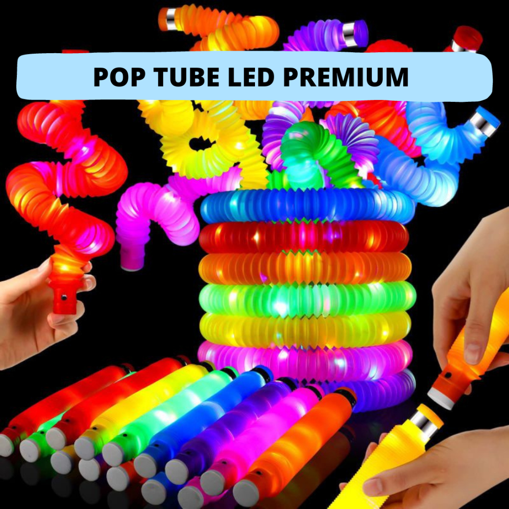 Kit Com 6 Pop Tube Grande de Brinquedo Com Led Cores Variadas Tubo Sensorial Luminoso