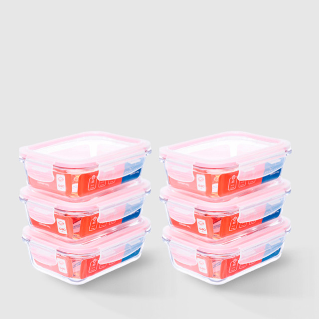 Kit com 6 Potes de Vidro Herméticos Retangulares 640ml Marmita Ideal Invicta