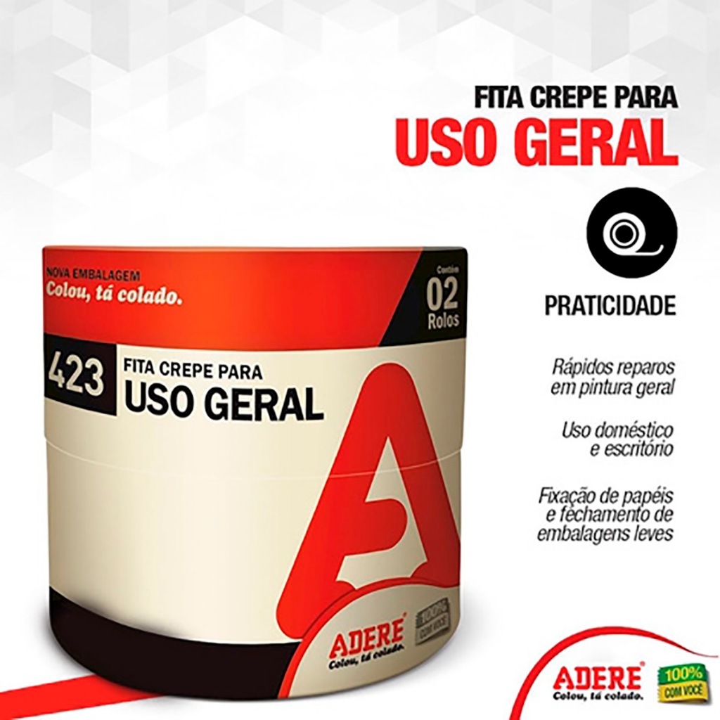 A Fita Crepe Uso Geral Adere é uma ferramenta indispensável para quem busca eficiência e praticidade em suas atividades do dia a dia. Com 18mm de largura e 50m de comprimento, ela se destaca por sua flexibilidade, permitindo um manuseio fácil e preciso. Além disso, seu adesivo de alta qualidade proporciona uma fixação segura que não deixa resíduos ao ser removido, tornando-a ideal para múltiplas aplicações. Este produto é perfeito tanto para projetos domésticos quanto para tarefas profissionais, garantindo resultados impecáveis em cada uso. Seja na pintura de paredes ou na criação de trabalhos manuais, a fita crepe Adere se adapta a diversas superfícies, oferecendo durabilidade e resistência. Vantagens: - Flexibilidade: Fácil de manusear. - Adesão eficaz: Adesivo que não deixa resíduos, garantindo uma remoção limpa. - Uso versátil: Ideal para demarcações em pinturas e fixação de papéis. - Resistência: Alta resistência a rasgos e descolamentos. - Fácil remoção: Não danifica as superfícies ao ser retirada. - Aplicação ampla: eficaz em diferentes tipos de superfícies, lisas ou rugosas. Especificações técnicas: Marca: Adere Dimensões: 18mm x 50m Cor: Branco Tipo: Fita adesiva Crepe Conteúdo da embalagem: 6 Rolos de fita crepe com 50 metros. Garantia: - 3 Meses de Garantia