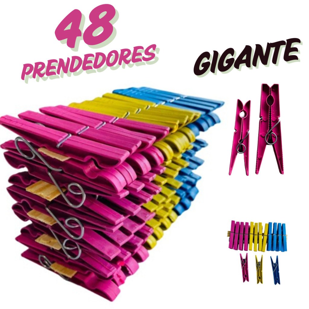 Kit com 60 / 48 / 36 / 24 / 12 Pregadores de Roupa em Plástico GIGANTE Reforçado muito bom …