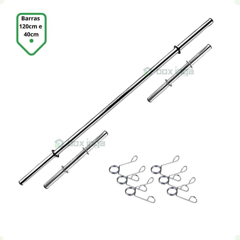 Kit com 60 Kg de Anilhas Ferro Fundido + Barras de Supino e Halteres