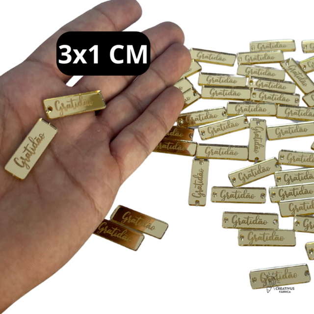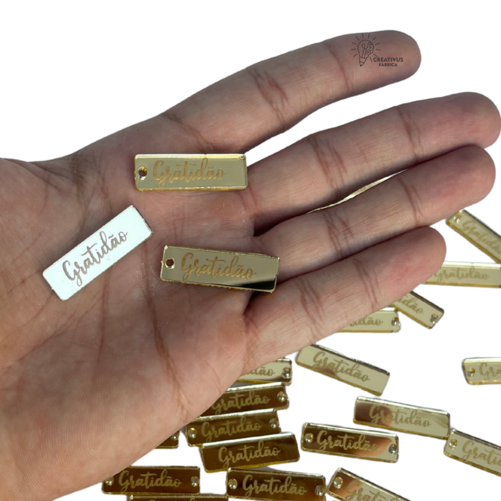 KIT COM 70 Etiquetas Gratidão Acrilico Espelhado 3x1 ou Personalizadas