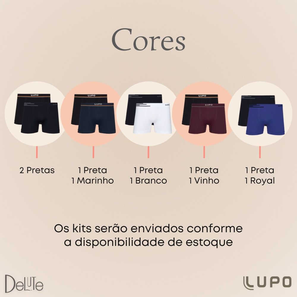 Kit De Cuecas Boxer Basic Microfibra Lupo Sem Costura Ref. 436 - Original Cueca boxer masculina Lupo. O kit é composto por 2 cuecas masculinas para adultos, modelo boxer confeccionado em microfibra da marca Lupo. Cueca boxer para homens que gostam de estilo. Com formato anatômico, muito mais conforto, malha com elasticidade para ajuste perfeito. Para garantir leveza e suavidade a cada movimento, invista no bem-estar que a cueca sem costura proporciona no dia a dia, escolha certa para acompanhar homens modernos e sofisticados. - Antimicrobial - Tratamento de Higienização. - Seamless Dry - Sem Costura. - Malha Elasticidade Para Ajuste Perfeito. - Acabamento com Elasticidade Multidirecional. - Ótimo Custo Benefício Na Compra Do Kit. - Qualidade Lupo. Composição: Poliamida 96% - Elastano 4% Tamanhos: P (38 a 40) - M (42 a 44) - G (46 a 48) - GG (50 a 52) Descrição da Marca Lupo é uma das maiores e melhores fabricantes de moda íntima e meias. Em 1947 a empresa já era o maior fabricante de meias masculinas do Brasil, a partir de 1990 a Lupo ampliou sua linha de produtos, passando a fabricar cuecas, e hoje é uma das marcas mais conhecidas neste ramo. Cueca Boxer Lupo Kit As cuecas boxer ou "cuecas box" tornaram-se muito populares no Brasil. Elas ocupam atualmente o posto das cuecas chamadas slip, que são as famosas sungas. Esses modelos são unanimidade quando se trata de um fator importante: as cuecas boxer deixam a aparência do homem bem melhor do que as cuecas tipo sunga. Com essa e outras vantagens a Cueca Boxer Lupo é uma ótima pedida para o homem que precisa de conforto, durabilidade e, é claro, confiança na hora de vestir uma cueca.