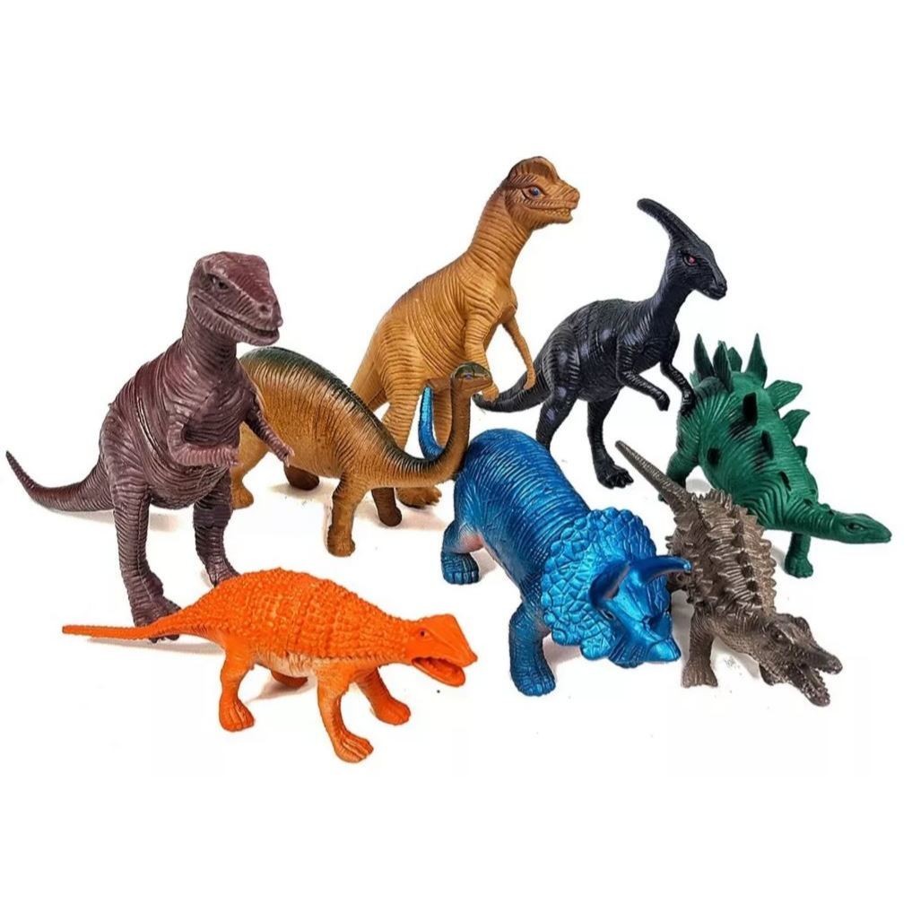 Kit Com 8 Dinossauros Emborrachado Grandes - Dino World Brinquedo infantil
