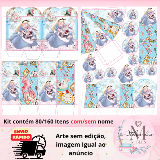 | Kit com 80/160 itens ALICE NO PAÍS DAS MARAVILHAS (COM/SEM NOME) - ... este produto | R$ 28,50 | 5% | 4.8/5 | 21 |