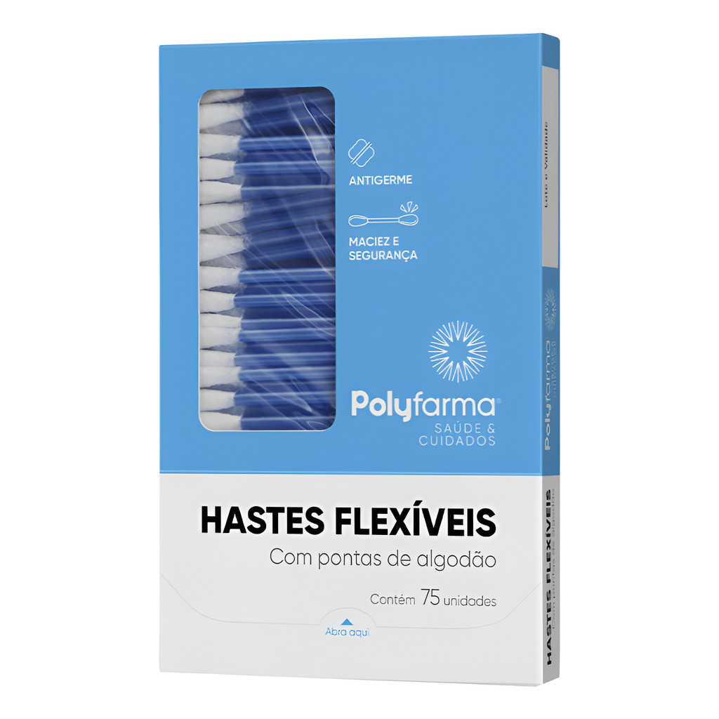 Kit com 900 Cotonetes Hastes Flexiveis Polyfarma antigerme uso diário Caixa com 75 unid