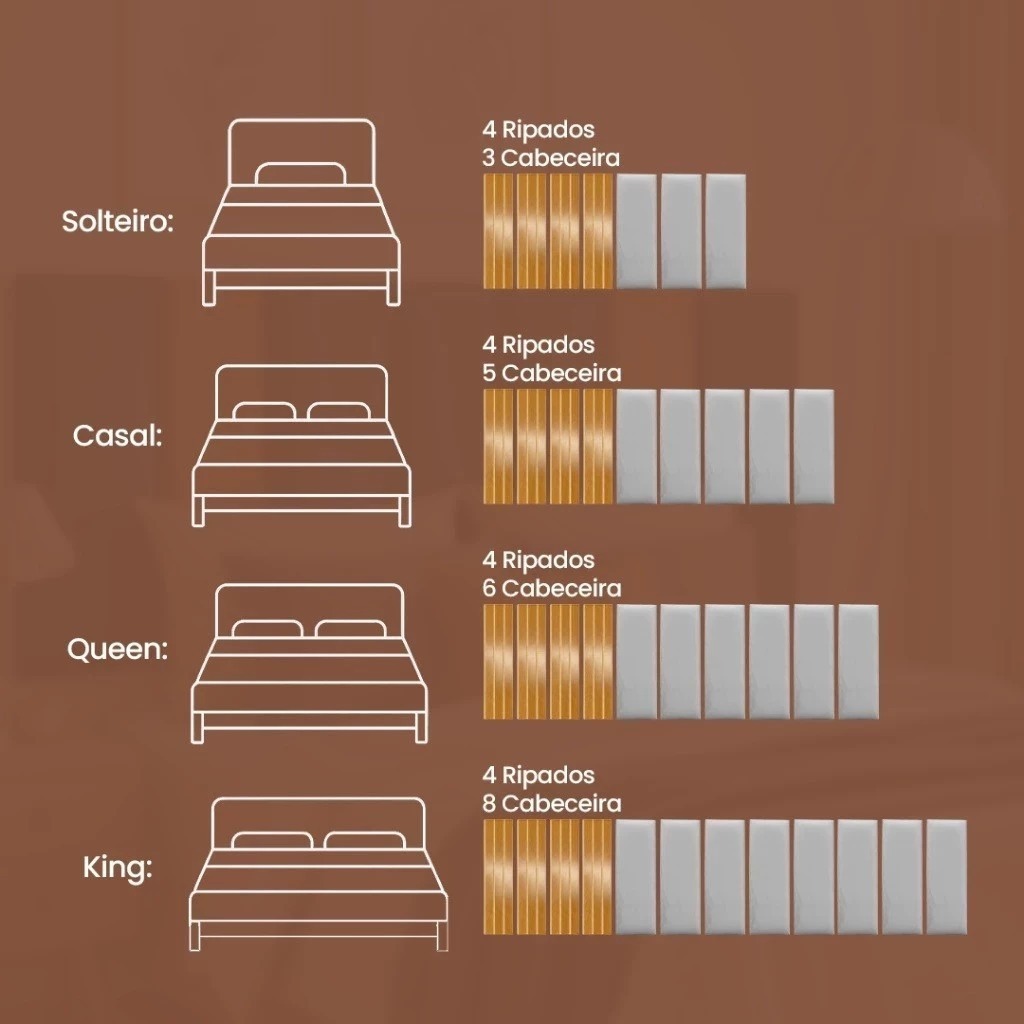 Nosso kit une placas estofadas 45x20 cm com ripado decorativo, criando um painel moderno, aconchegante e super valorizado — perfeito para renovar seu ambiente sem obra e sem sujeira. Diferenciais do nosso produto: • Material leve e resistente • Fácil aplicação • Visual moderno e elegante • Combinação perfeita entre estofado + ripado Casal ( 9 Placas ) = 5 Cabeceiras Estofadas + 4 Ripados Queen (11 Placas) = 7 Cabeceiras Estofadas + 4 Ripados King (13 Placas ) = 7 Cabeceiras Estofadas + 6 Ripados CONTEUDO DO KIT: CABECEIRAS ESTOFADAS MODULAR 45CM DE ALTURA X 20CM LARGURA +PLACAS RIPADAS 45CM ALTURA X 11CM LARGURA. QUANTIDADE DE ACORDO COM MODELO DE CAMA ESCOLHIDA NO ANUNCIO. Material: MDF, Espuma Própria, Tecido Suede, Dupla Face. ⚠️ Observação importante: As cores podem sofrer pequena variação de tonalidade conforme a iluminação do ambiente ou tela do celular/computador. Recomendamos que a instalação seja feita com todas as placas posicionadas no mesmo sentido para evitar diferença de tonalidade.