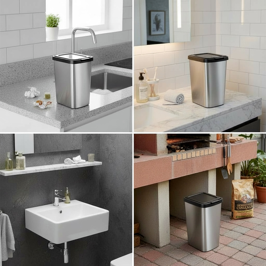 Lixeira Tipo Inox com Tampa 9L - Cesto Retangular Compacto e Moderno para Cozinha e Banheiro Transforme a organização da sua casa com a lixeira que parece inox com tampa 9L. Ideal para cozinha e banheiro, essa lixeira compacta e moderna oferece um design elegante e funcional, perfeito para quem busca praticidade e sofisticação no dia a dia. Essa lixeira é resistente à corrosão, garantindo durabilidade e um acabamento brilhante que combina com qualquer decoração. A tampa de fechamento hermético mantém os odores indesejados longe e proporciona maior higiene, evitando o acúmulo de sujeira. Com um tamanho compacto de 9L, ela é perfeita para espaços menores, como banheiros, escritórios e cozinhas, sem ocupar muito espaço, mas com grande capacidade de armazenamento. O formato retangular facilita o encaixe em cantos e áreas mais estreitas, tornando-a a escolha ideal para ambientes modernos e funcionais. Vantagens: • Durabilidade garantida: A lixeira é resistente e fácil de limpar, oferecendo longa vida útil. • Design moderno: Perfeita para complementar qualquer estilo de decoração, do mais simples ao mais sofisticado. • Fechamento hermético: A tampa evita odores e mantém o ambiente mais agradável e limpo. • Tamanho ideal para espaços pequenos: Com capacidade de 9L, é a escolha perfeita para quem busca eficiência sem abrir mão da praticidade. • Versátil: Ideal para cozinhas, banheiros, escritórios e outros ambientes internos. Quebre objeções: • Se você busca uma lixeira resistente e com visual sofisticado, mas que também se encaixe em espaços menores, essa lixeira Tipo inox é a escolha perfeita. Não se preocupe com o excesso de tamanho ou desgaste: ela foi projetada para durar e manter seu brilho por muito tempo, resistindo até mesmo ao uso diário em ambientes com alta rotatividade. Invista em qualidade e estilo com nossa lixeira com tampa 9L! Perfeita para quem deseja mais organização, higiene e um toque de modernidade nos ambientes mais importantes da sua casa. Compre agora e garanta mais praticidade no seu dia a dia!