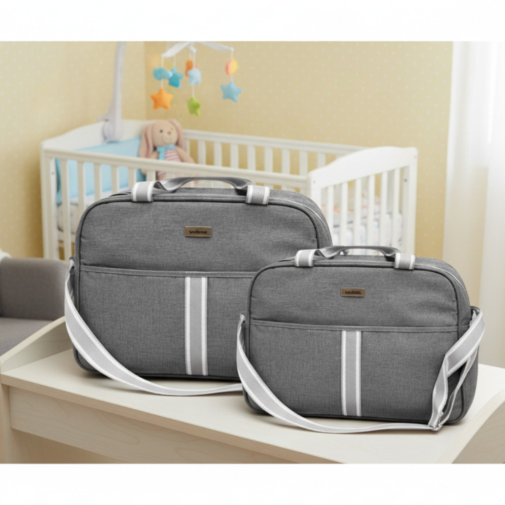 Kit Bolsa + Frasqueira Saída Maternidade Satuko Baby O Kit Bolsa + Frasqueira Satuko Baby foi desenvolvido para oferecer praticidade, organização e elegância nos momentos mais importantes com o seu bebê. Ideal para a saída da maternidade, passeios e viagens, o conjunto combina funcionalidade com um design moderno e sofisticado. A bolsa maternidade possui amplo espaço interno, permitindo organizar roupas, fraldas, mantas e acessórios com facilidade. Já a frasqueira é perfeita para levar itens menores do bebê, como produtos de higiene, chupetas e pequenos objetos, mantendo tudo sempre à mão. Produzido em material resistente e de fácil limpeza, o kit conta com alças reforçadas e alça tiracolo ajustável, proporcionando conforto no transporte. O design com detalhe de listras frontais traz um visual elegante que combina com qualquer ocasião. Dimensão: Bolsa - Altura 30cm X Comprimento 40cm X Largura 15cm Frasqueira - Altura 25cm X Comprimento 30cm X Largura 15cm Destaques do produto: -Kit com Bolsa Maternidade + Frasqueira -Ideal para saída da maternidade e passeios -Espaço interno amplo para melhor organização -Material resistente e fácil de limpar -Espaço Interno Impermeável -Alça de mão e alça tiracolo ajustável -Design moderno e elegante