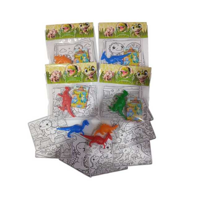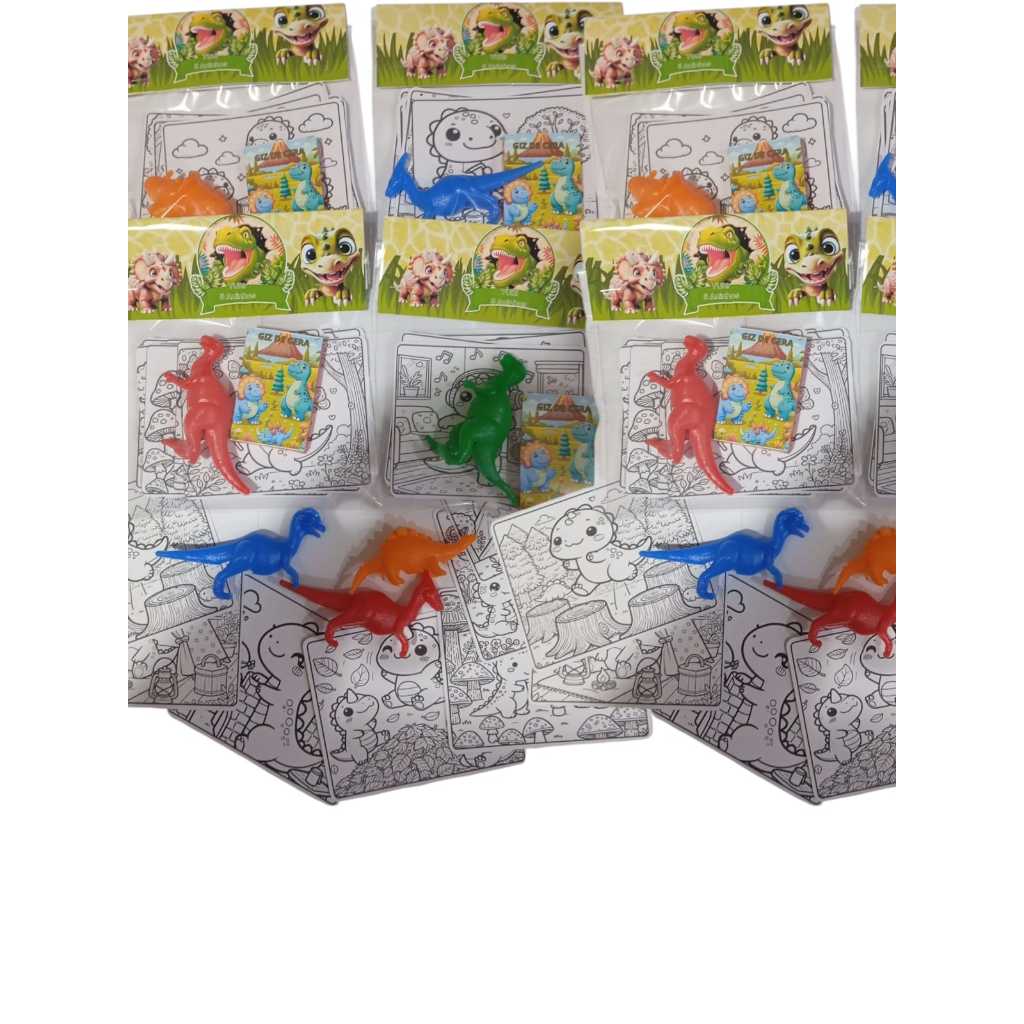 Kit com Cards para colorir + Giz de Cera + Brinquedo personalizado para festa de Aniversário-Dinossauros Lembrancinha