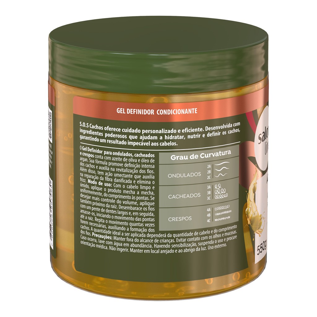 O Kit Salon Line conta com 1 Gel Definidor Revitalizador de Cachos S.O.S Cachos Azeite de Oliva para definição dos fios, revitalização e remodelação dos cachos, além de garantir um day after sem frizz, 1 Creme para Pentear Coco Hidratação Nutritiva S.O.S Cachos para mais hidratação, nutrição, saúde, desembaraço e brilho, além de 1 Máscara de Hidratação S.O.S Hidratação Turbinada para hidratação power e desembaraço imediato. <>INDICAÇÕES$& Para quais tipos de cabelo? Cabelos ondulados, cacheados e crespos. Qual a indicação? Cabelos danificados, ressecados, desnutridos, sem brilho e desidratados. Pode usar a partir de quantos anos? A partir de 12 anos. <>ATIVOS$& Quais os principais ativos? Gel Definidor Revitalizador de Cachos S.O.S Cachos Azeite de Oliva Azeite de Oliva: rico em vitaminas E e ácidos graxos, possui propriedades regenerativas que auxiliam na restauração das fibras capilares, além de garantir nutrição, maciez e cutículas totalmente seladas. Óleo de argan: com poderosa ação umectante, nutre e hidrata, recuperando totalmente a fibra danificada. Também garante ação antifrizz e brilho extremo. Creme para Pentear Coco Hidratação Nutritiva S.O.S Cachos Óleo de coco: fortalece os fios, proporciona brilho radiante e maciez extrema. Manteiga de coco: rica em ácidos graxos, ideal para restaurar o cabelo danificado. É um excelente hidratante natural e proporciona maciez, força e brilho. Máscara S.O.S Hidratação Turbinada Manteiga de karité: hidrata e nutre profundamente o cabelo. Óleo de rícino: fortalece e nutre os fios danificados. Azeite de oliva: garante força e hidratação intensa. <>MODO DE USO$& Qual a melhor forma de usar? Gel Definidor Revitalizador de Cachos S.O.S Cachos Azeite de Oliva Com o cabelo limpo e úmido, aplique o produto mecha a mecha, uniformemente do comprimento às pontas. Se desejar mais controle do volume, aplique também próximo da raiz. Desembarace os fios com um pente de dentes largos e, em seguida, amasse-os, iniciando o movimento das pontas até a raiz. Repita o movimento quantas vezes forem necessárias, auxiliando a formação dos cachos. Dicas de uso No dia seguinte, com o cabelo seco, aplique o produto como se fosse a primeira vez mecha a mecha, uniformemente, no comprimento e pontas para revitalizar os cachos e eliminar o frizz. Caso prefira, umedeça os fios com água e siga com o processo de aplicação. Creme para Pentear Coco Hidratação Nutritiva S.O.S Cachos Com o cabelo limpo e úmido, aplique o Creme para Pentear mecha a mecha, uniformemente, do comprimento às pontas. Se desejar mais controle de frizz, aplique também próximo a raiz. Desembarace os fios com um pente de dentes largos e em seguida, amasse-os iniciando o movimento das pontas até a raiz. Repita o movimento quantas vezes forem necessárias. Máscara S.O.S Hidratação Turbinada Após lavar os cabelos, retire o excesso de água e aplique a máscara do comprimento até as pontas. Aguarde 3 minutos e enxágue. <>CARACTERÍSTICAS$& É produto vegano? Os produtos são veganos. É liberado? Os produtos não são liberados.